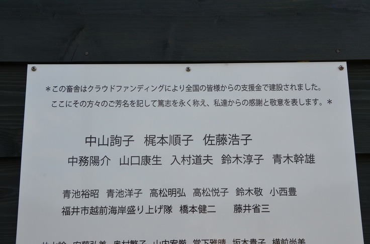 お礼を込めて、感謝のご芳名ボードが畜舎に付きました。