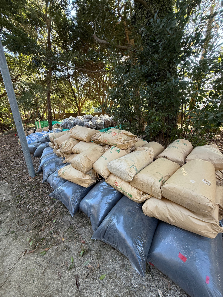 土中環境の好循環を図る大規模な再生作業に必要な資材(竹炭・くん炭・落ち葉)などは美波町内で同じく里山の再生活動に取り組まれいている「さとねっこ」さんからご調達しております