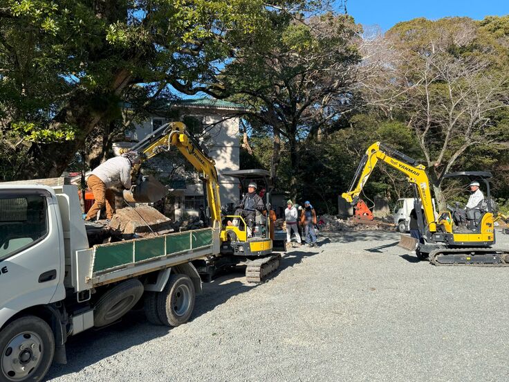 美波町内からは、建設業者「井上建設」「海部土建協業組合」、「日和佐森林組合」、「大城石材店」、「四国の右下木の会社」、「さとねっこ」、「西新町大鼓若連中」、「東町大鼓若連中」の皆様にお手伝いをいただいております