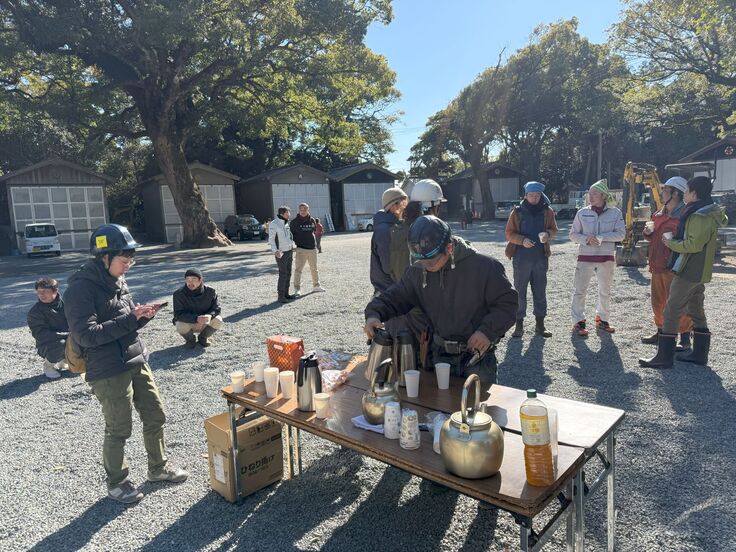 休憩には地球守のメンバーで焙煎士の特製のコーヒーや、美波町赤松産の阿波晩茶の振る舞い。一休みしながら、今回のメンバー間で親睦を図ります