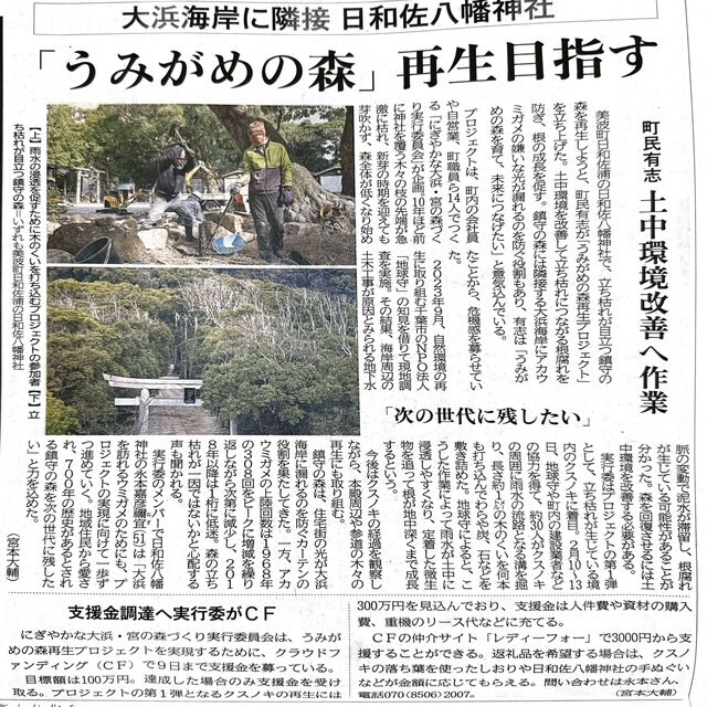 うみがめの森再生プロジェクトが美波町の枠を超えて県内に伝わってます。これが関西、そして日本全国にこうした活動の輪の広がることを切に願います。