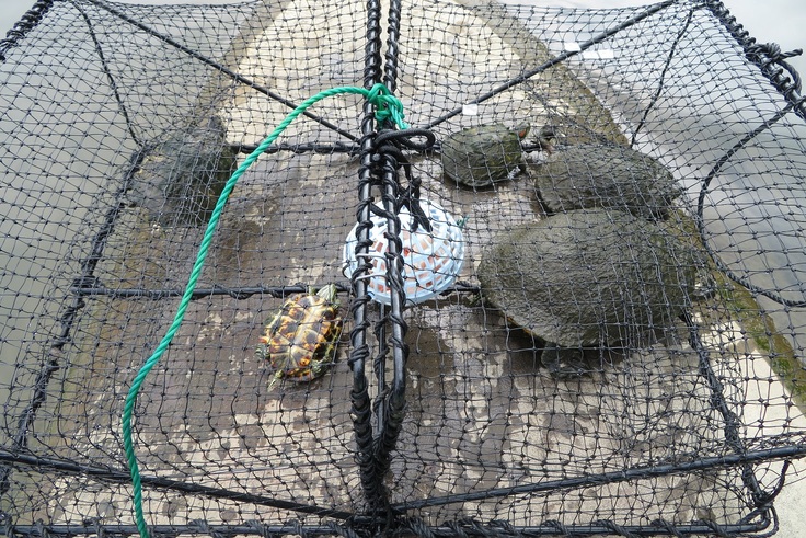 こんにちは、アカミミガメの捕獲を2週間毎に行っている状態です。