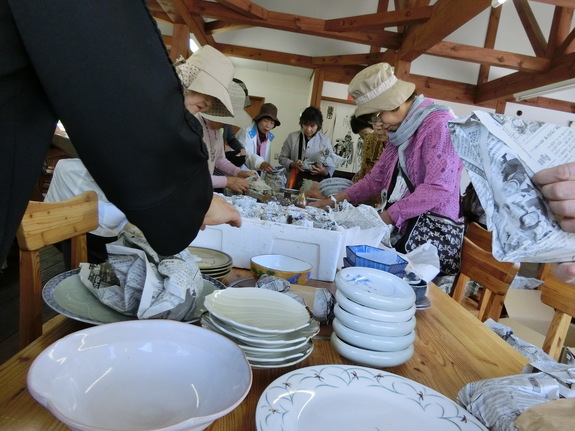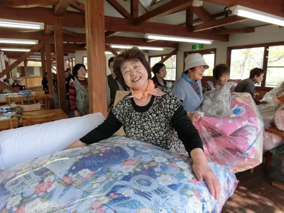 14時半過ぎに山田町大沢地区仮設住宅に着き、佐賀県有田町で集めた支援物資(寝具、食器など)を下ろす。