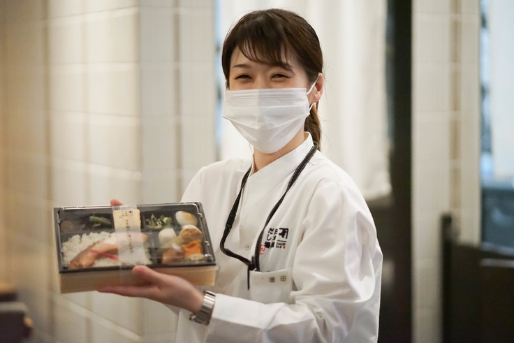 皆様の応援のお気持ちの半分をお弁当という形で福祉現場に、もう半分を来店を通して店舗に、お届けするプランです。