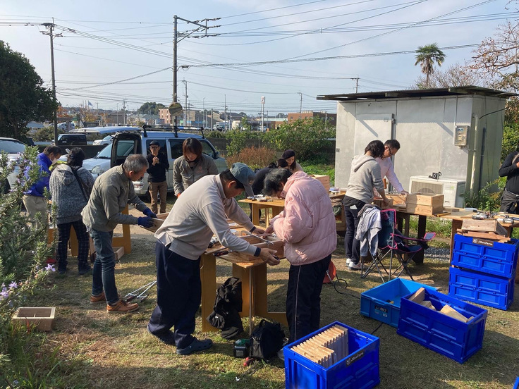 巣箱作りワークショップではJBeeFarmで事前に準備した巣箱キットを参加者さんが1日かけて組立て、その日のうちに持ち帰っていただくワークショップとなっています。