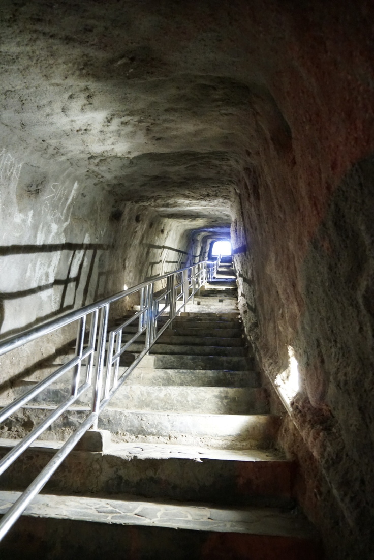 (中へ入ると下へ降りる階段 奥の光が入口)