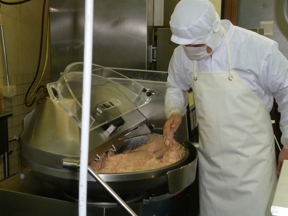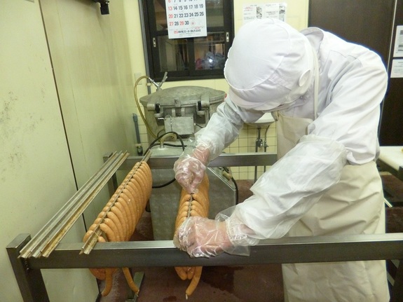 赤城屋では朝8時、ハム・ソーセージ作りが始まります。