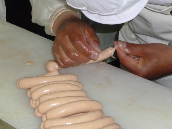 皆さん手際よく、時折冗談を言いながら笑顔で作っていたソーセージ。