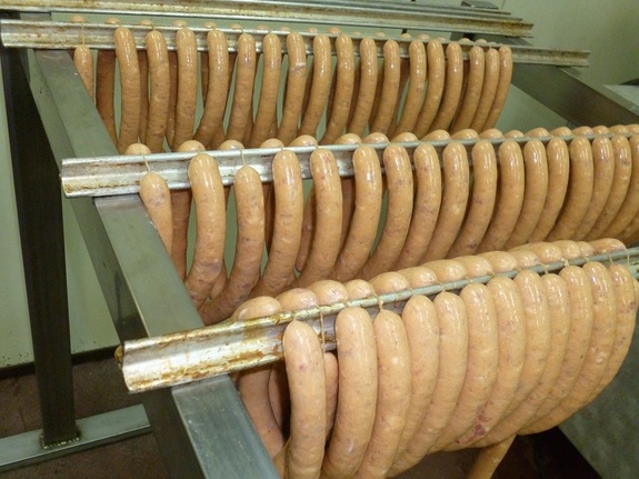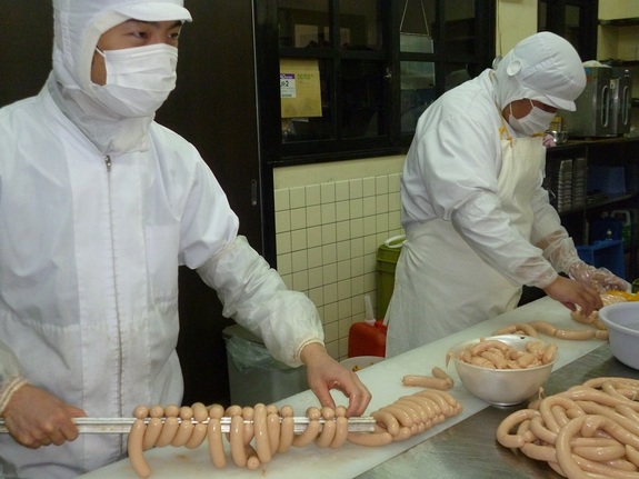 取材させてもらったソーセージ作りの現場では、洗い物専門に行っている人もいます。腸詰めされたソーセージを同じ間隔にならべていく仕事の人もいます。