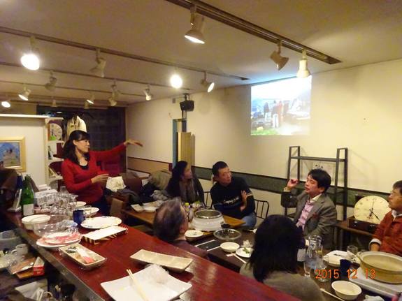 そして、2月上旬にできる自然派日本酒「幸sachi」の出来上がりラベル、ビン、藍染め掛け布をお見せしました。