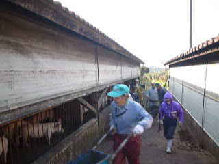 私たちはここへ行き、障害を持っている生産者の方と一緒に養豚作業を行いました。