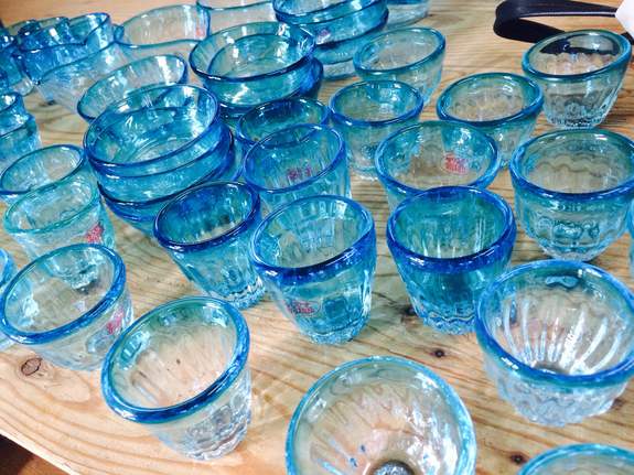 注文した藍色グラデーションおちょこ、徳利、小皿の出来映えを確認するために。。。