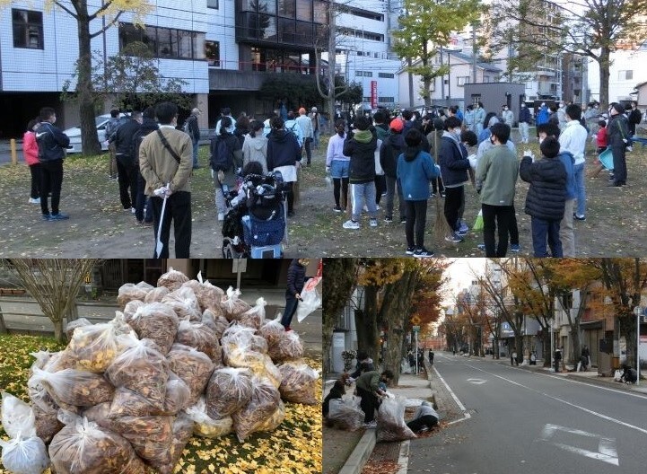 - クリーンアップ作戦でけやき通りの落ち葉を集め堆肥の原料として再利用