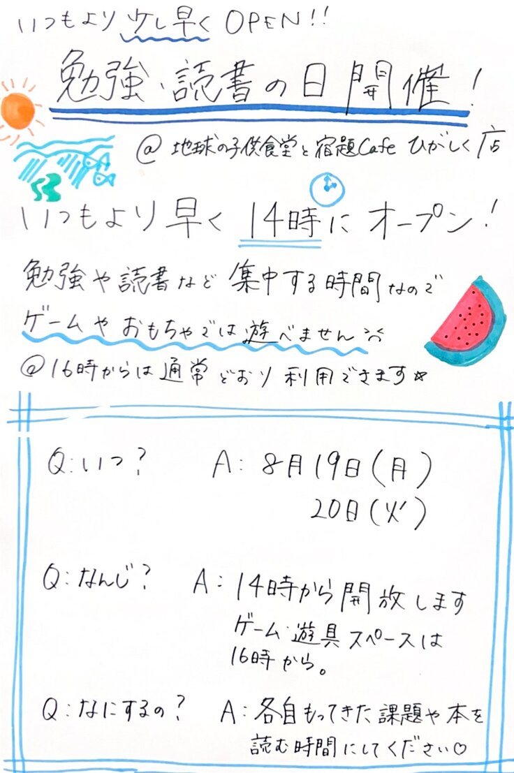 地球の子供食堂と宿題Cafeひがしく店で