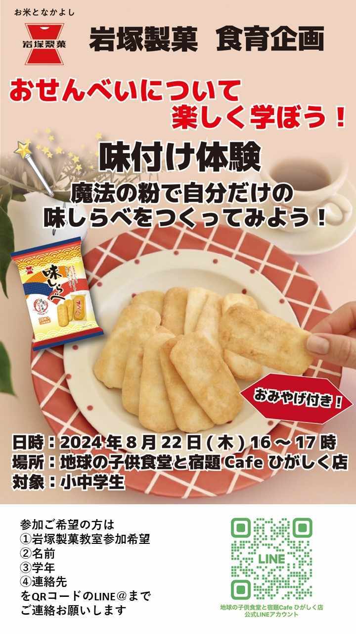 ②【岩塚製菓presentsおせんべいについて学ぼう!】8/22(木)開催