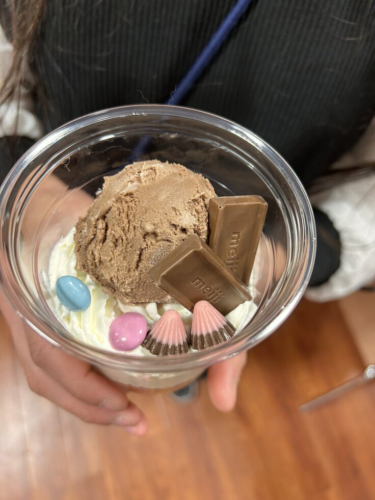 株式会社明治さまからご提供いただいたお菓子とアイスで作るパフェや