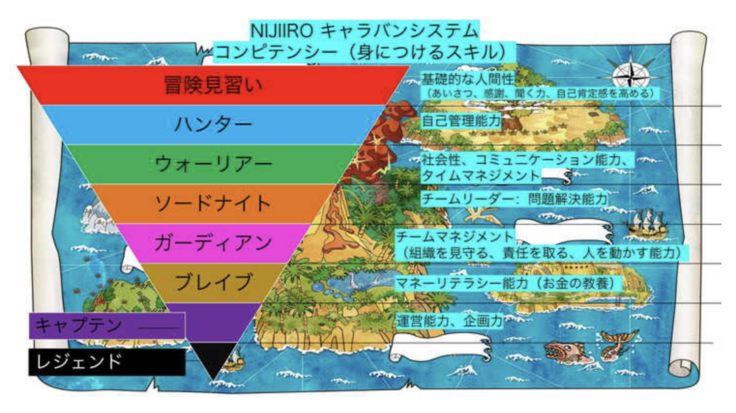 弊社はお子様を「魅力的な大人に育てる」ことを目標としていています。野外教室や体操教室をサービスとして展開し、そのプログラムの一環に「キャラバンシステム」というものを採用しています。ざっくり申し上げると「社会性の獲得を可視化し細分化・段階化した教育プログラム」です。