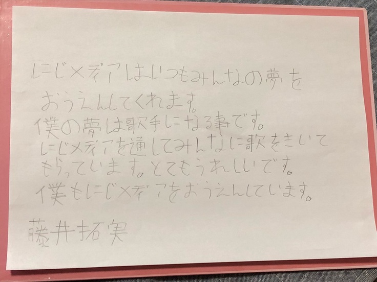にじメディアでは、拓実さん出会って3年になりますが、毎年拓実さんの歌をいろいろな場所で歌っていただける機会や歌っている映像を多くいろいろな人に見ていただける機会を提供しています。