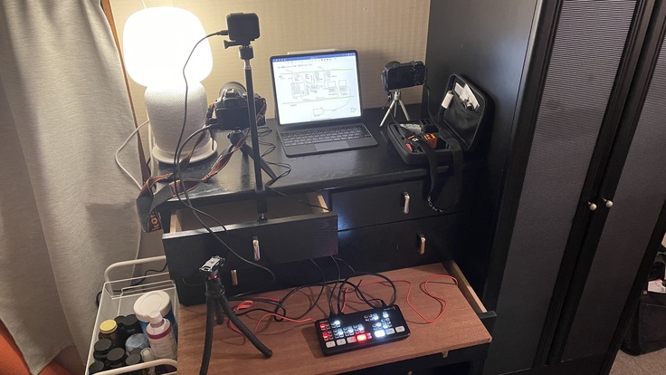 これはぼくの自宅でライブ配信の練習の様子を写真にしたものです。