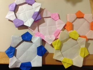 Rainbow Bridge Projectで子供たちに配る予定の折り紙メダルを折ることも大事な準備です。Rainbow Bridge Projectとはフィリピンの子供たちと日本の子供たちに夢を描いてもらい、海をこえてつながろう、というプロジェクトです。