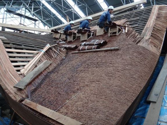 何枚かの皮をつなぎ合わせて作ってから葺くことを言います。