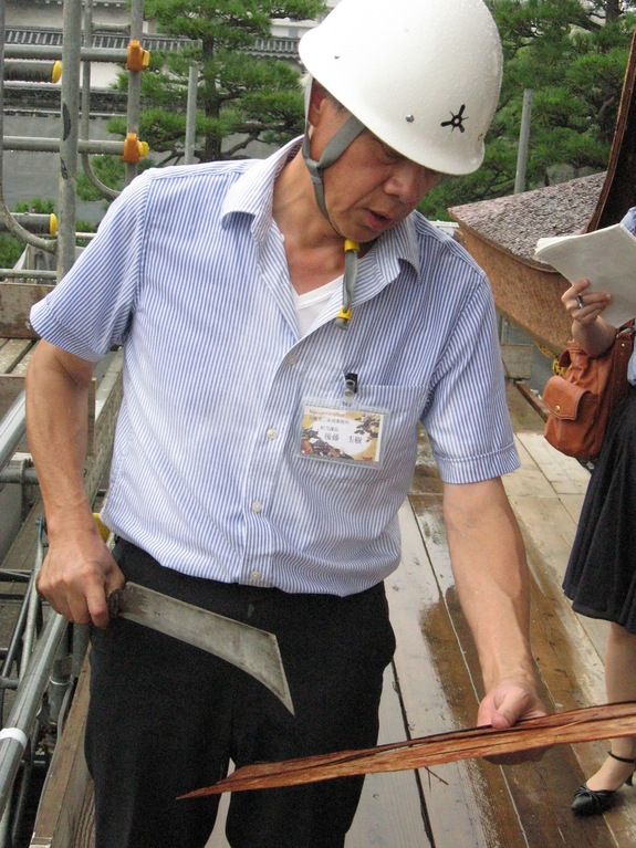 a.手斧(ちょうな):軒付け(屋根の木口(こぐち))をキレイに削る。