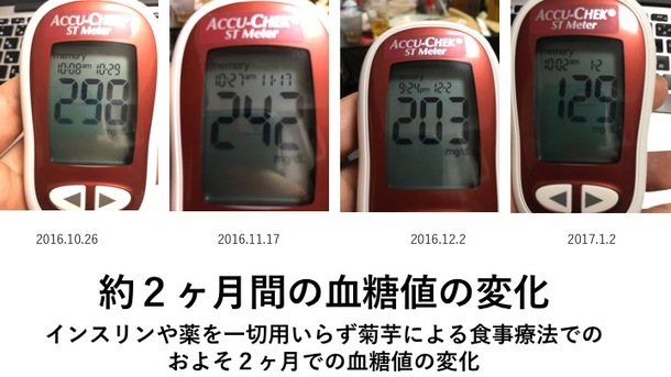 もちろん菊芋の効果効能を約束するものではありませんが、絶望から希望に変わっていった私自身のデータとしてご参考までに。