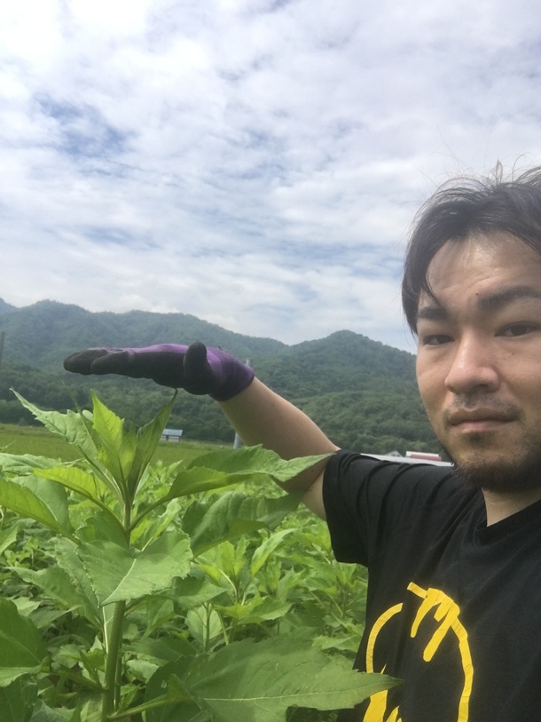 有機肥料のみを使い農薬を一切使用していない為、一部雑草も元気なのが気になりますが、今のところ165cmほどの背丈まで元気いっぱいすくすくと成長してくれてます。(^_^)
