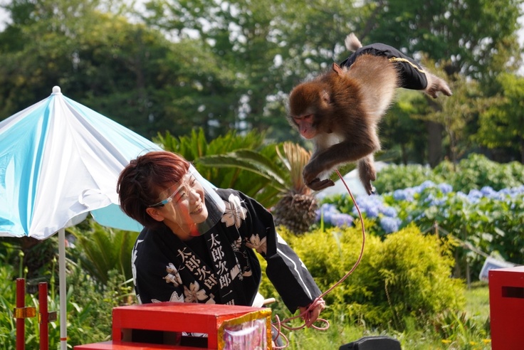 It’s a traditional 1,000-year-old monkey performance. Actually, history stopped in the 1950s. About 40 years ago, then 17-year-old Taro Murasaki revived the monkey performance as the first modern monkey performance. In order not to end the reconnected history, we decided to overcome this predicament with new challenges rather than wait for the end of COVID-19.