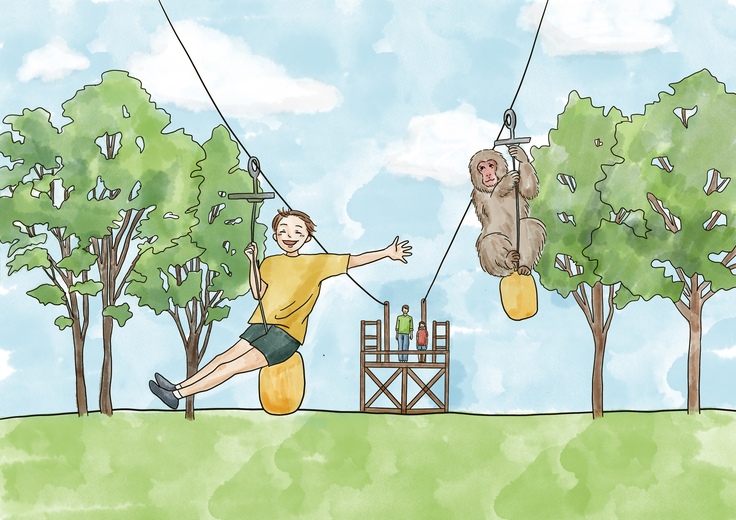 We will create a facility where you can take pictures of monkey sliding on a zipline, which have never existed anywhere in the world. We will make it a safety-oriented facility so that many children and adults can enjoy it. We would like you to enjoy the experience with monkeys, which will be a lifelong memory that you can't experience anywhere else.