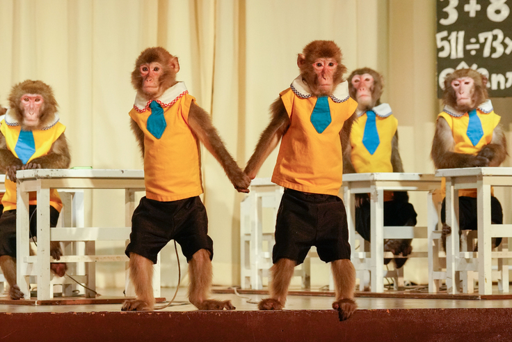 Monkeys who had been performing tricks up until now spend their time in a breeding facility behind the theater. There is no problem raising monkeys in the current facility, but many monkeys who were active on the front stage every day love to appear in front of customers, so spending time in the backyard itself should not be stressful, so we sometimes have to take them for a walk in the area for customers.
