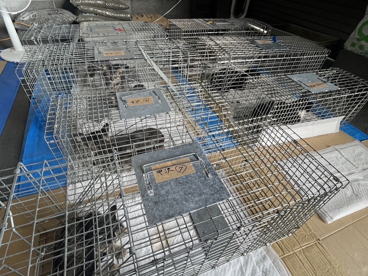 昨日の捕獲時大雨でみんなずぶ濡れ猫ちゃん達も出てこない