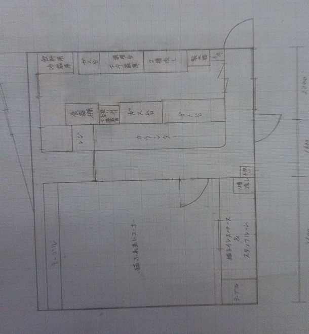 上側の壁までまっすぐキッチンを貫通するように並んでありますので