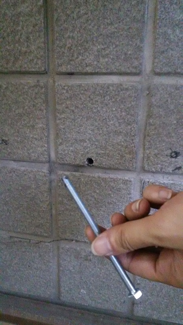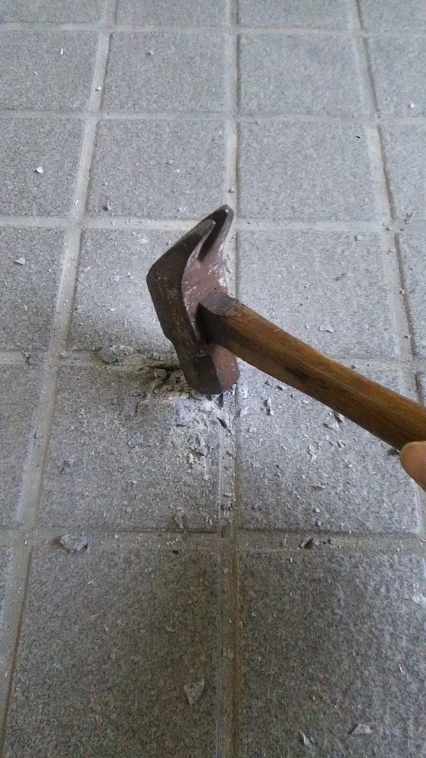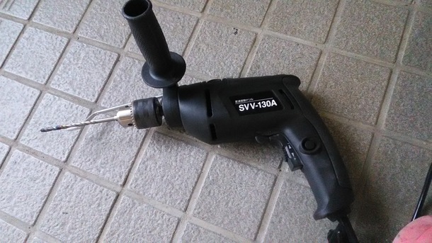 なんと業務用のウン十万する振動ドリルでいとも簡単に穴をあけ