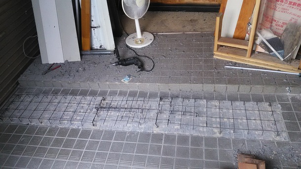 タイルは滑る素材でコンクリートがくっつきにくいので