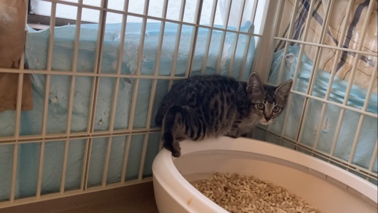 7月9日に保護したキジトラ子猫くん、チャパくんですが、保護当時は捕獲器やケージの中を飛び回ってしまい、こんなに怖がる子でこれから大丈夫か心配になりました。