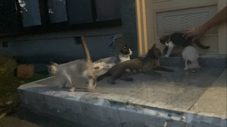 ママ2匹、2.5ヶ月くらいの子猫5匹、3ヶ月くらいの子猫4匹💦(写真は子猫5匹やママ2匹)
