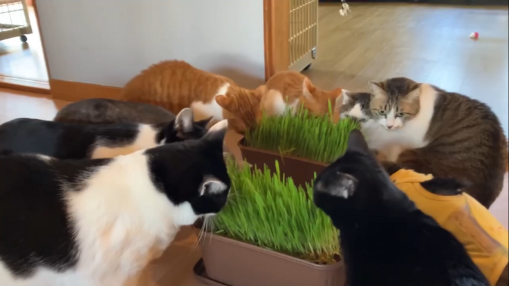 猫草が大盛況な様子