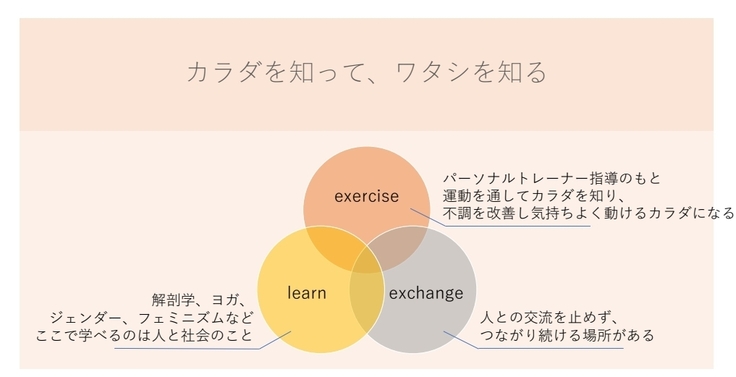 運動を通して自分の身体を知り、ジェンダーに押し付けられた理想ではなく、自分が心地良いと思える身体づくりをサポート