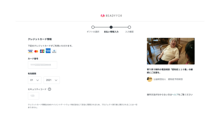 【パソコンをご利用の方】クレジットカードでのご支援方法