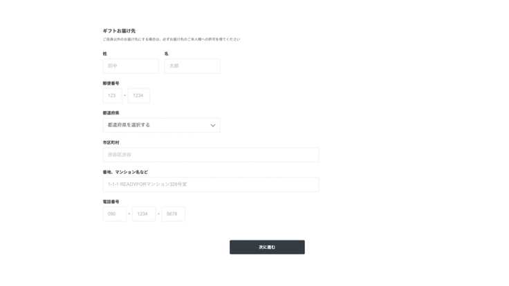 クレジットカード情報およびギフトお届け先(住所)を入力