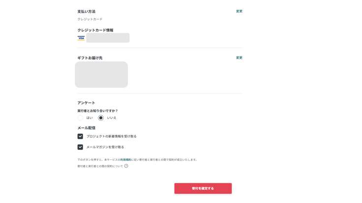 内容を確認し間違いがなければ[寄付を確定する]をクリック