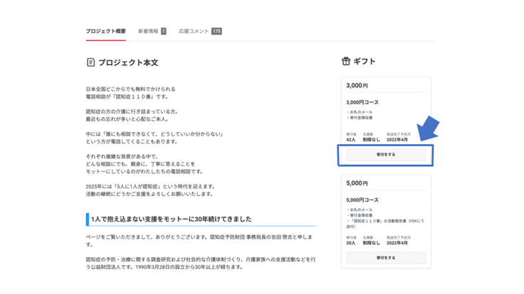 支援したいギフトを選び[寄付をする]をクリック