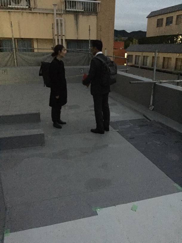 ネクストゴールに設定した屋上緑化実現に向けて検討が始まり、洛北造園の河原義明さんに現場を視察いただきました。