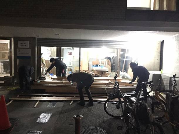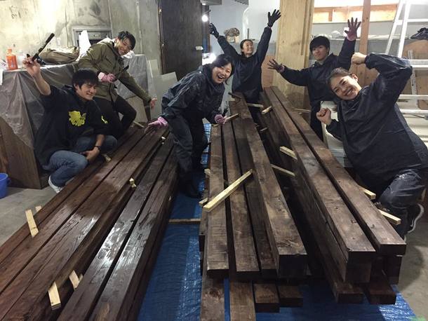 1人が持てないほど重く山積みになった木材もみんなの力で少しずつ少しずつ減っていき、作業が終わったのは深夜0時近く。