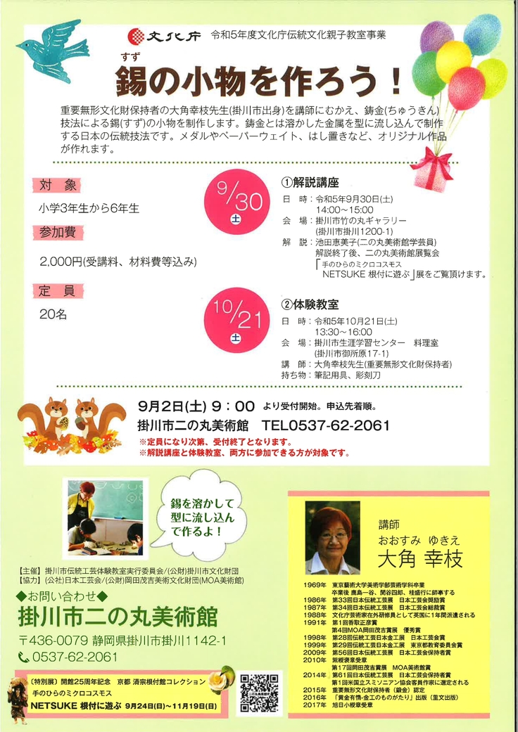 令和5年度 文化庁伝統文化親子教室事業 大角幸枝先生に教わる金工教室「錫の小物を作ろう!」