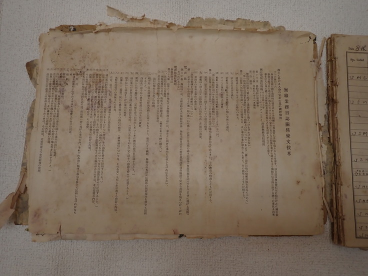 残された「無線日誌」、これ以上損傷が進むと修復困難に…