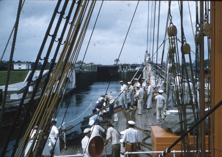 横浜みなとみらいに保存されている帆船日本丸は、1930年建造の練習船です。練習船とは、船員をめざす、主に高校生以上の生徒や学生(実習生)が実地訓練のために乗る船のこと。これまでに1万1,500人以上の実習生が日本丸と共に航海を行い、訓練を積み、船員となって社会へ巣立っていきました。
