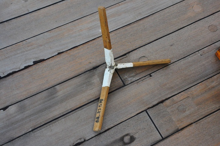 次の写真は、「縄うち機」でロープをつくるときに使う、「ロープレンチ(練習船では「なこうど」と呼ばれています)」という道具です。