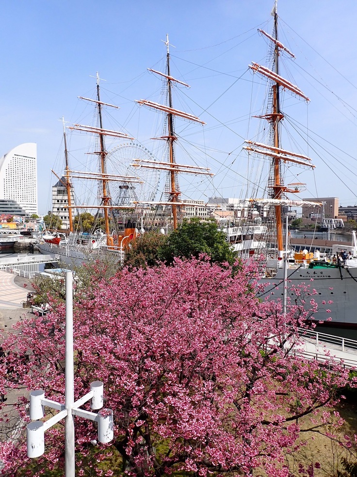 気温も上がって暖かくなってきました。日本丸周辺にもさまざまなお花が咲き始めています。